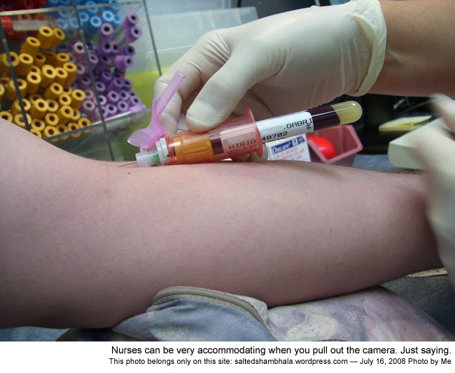Last month I went to the doctor to get my cholesterol tested and I brought my camera into the lab for this sole purpose. She just looked at me funny!