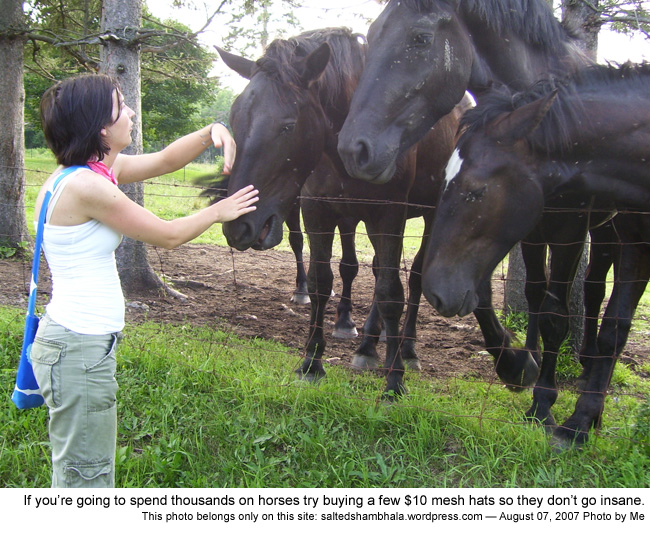 There’s a very defined edge to my little village… once you get past the last row of houses you’re walking into miles of open fields surrounded by acres of forest. So on the western edge of town, in between two houses, is a space where these horses can come right up to the street, and the only thing keeping them from breaking into the village and into a murderous rampage from weeks of having their eyes packed with flies, is a rusted wire fence suspended between rotted out stumps. Their attack is inevitable, which is why I think we should be building walls to keep us protected. Think of the children.