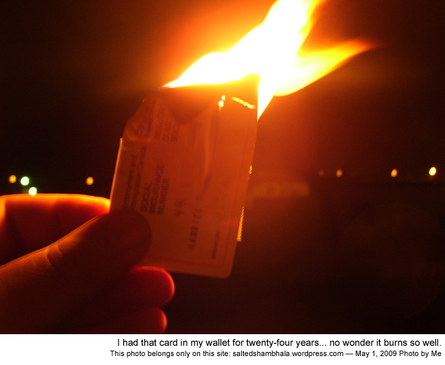 How to dispose of something in a meaningful way, at least in a way relevant to the feelings associated to the object, is a tricky thing. Most of the time you only get one chance to do it right, and if you want to film the event you definitely will never get a second take. For a lot of weird and wacky reasons I recently changed my name, so that’s my Social Insurance Number (SIN) with my old name. My new name, and this is strictly for the purposes of performing fraud so don’t tell anyone, is Sydney Crosby.